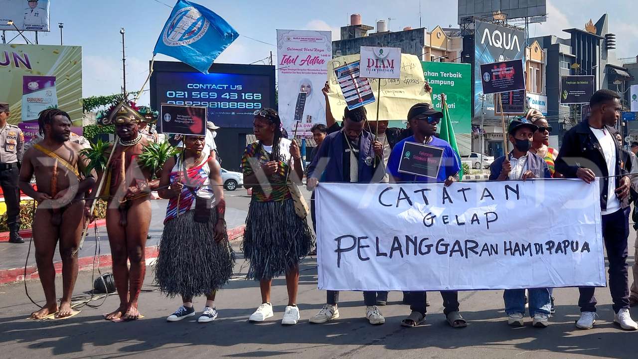 DASWATI.ID – Mahasiswa Papua di Lampung menggelar aksi damai menuntut keadilan atas dugaan pelanggaran hak asasi manusia (HAM) yang terjadi di Tanah Papua.