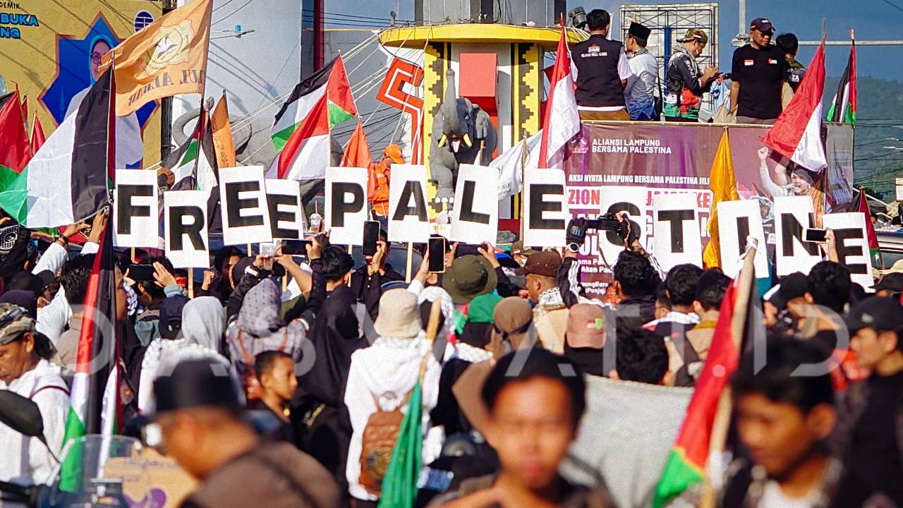 Aksi Nyata Lampung Bersama Palestina Jilid 3 di Tugu Adipura Kota Bandar Lampung, Sabtu (19/4/2025). Foto: Josua Napitupulu