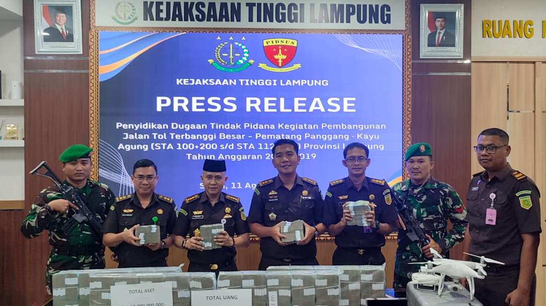 DASWATI.IDKejaksaan Tinggi Lampung melalui Penyidik Tindak Pidana Khusus (Pidsus) berhasil mengungkap dugaan tindak pidana korupsi dalam kegiatan pembangunan Jalan Tol Terbanggi Besar – Pematang Panggang – Kayu Agung (STA 100+200 s/d STA 112+200) Provinsi Lampung Tahun Anggaran 2017-2019.