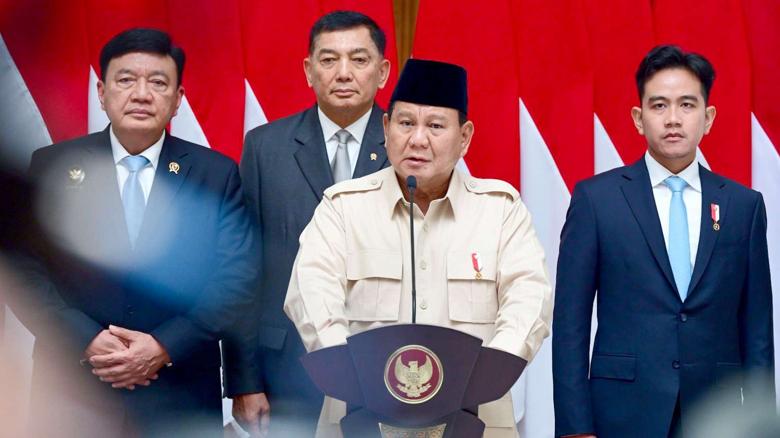 Presiden RI Prabowo Subianto menyampaikan pernyataan pers sebelum kunjungan kerja ke Mesir, di Pangkalan TNI AU Halim Perdanakusuma, Jakarta, Selasa (17/12/2025). Dokumentasi Kementerian Pertahanan