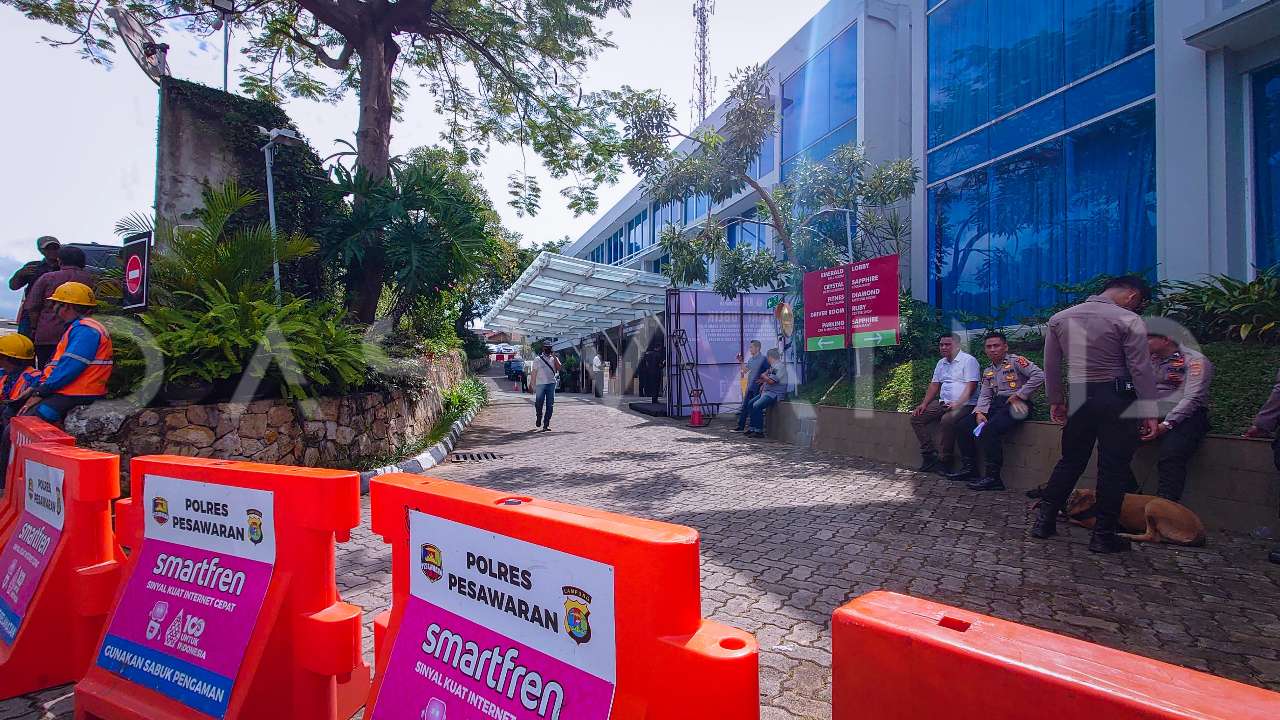 Lokasi debat dijaga ketat oleh aparat penegak hukum dari Polres Pesawaran dan TNI, lengkap dengan anjing penjaga serta road barrier di setiap pintu masuk.