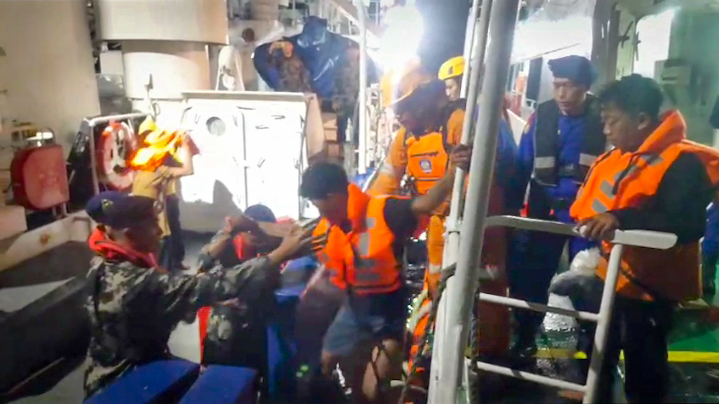 Proses evakuasi lanjutan berlangsung hingga dini hari. KP Orca-05 tiba di Pulau Tabuan pada Minggu (21/12/2025) pukul 00.30 WIB untuk menjemput para penyintas.