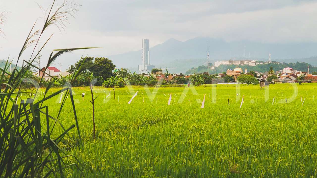 Areal persawahan di tengah pemukiman padat penduduk Kota Bandar Lampung. Foto: Josua Napitupulu