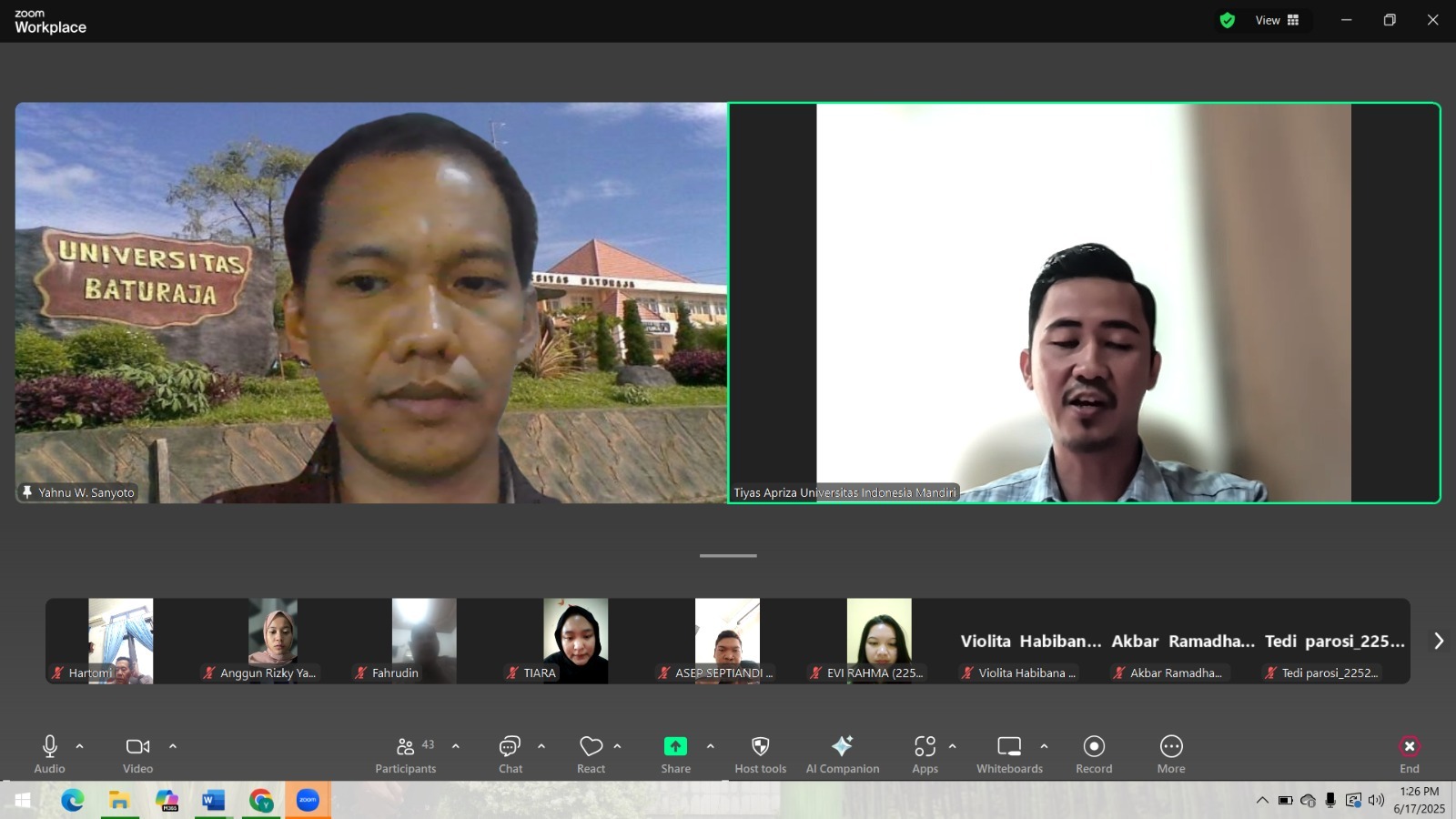 DASWATI.ID – Program Studi Ilmu Pemerintahan FISIP Unbara (Universitas Baturaja) Sumatera Selatan menggelar serangkaian kuliah tamu daring (dalam jaringan) pada 17-19 Juni 2025.