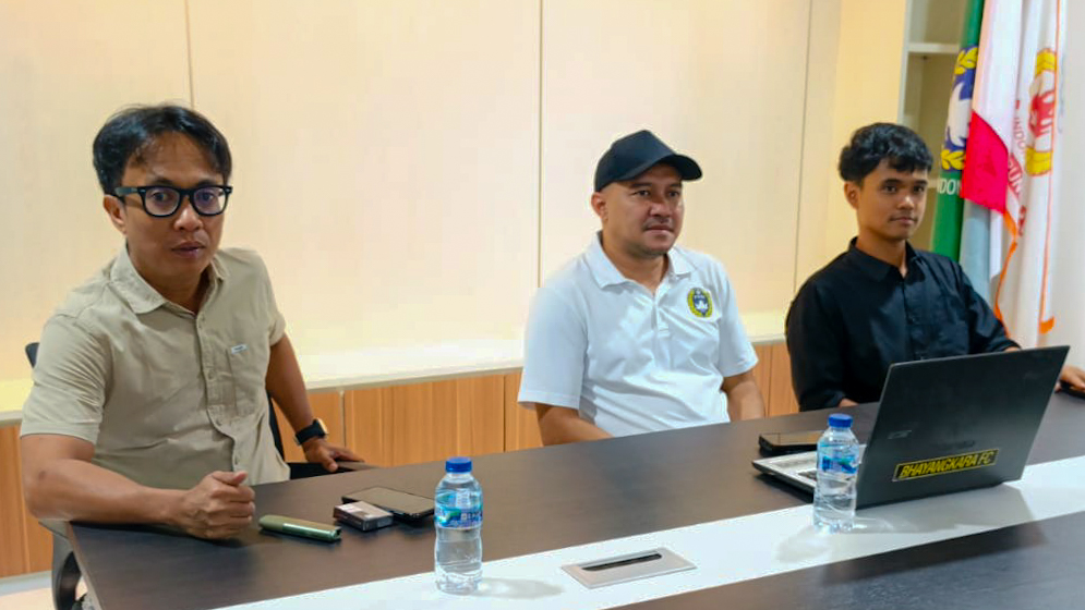 Wakil Asprov PSSI Lampung Yoga Swara (tengah) saat konferensi pers di Kantor PSSI Lampung, Kota Bandar Lampung, Senin (11/8/2025). Foto: Istimewa