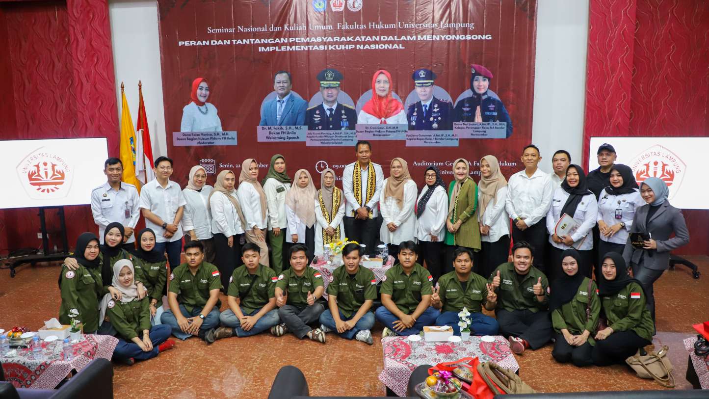 Seminar yang berlangsung secara hibrida di Gedung A Prof. Abdulkadir Muhammad FH Unila dan melalui platform Zoom ini dihadiri oleh lebih dari seratus peserta, termasuk mahasiswa, akademisi, praktisi hukum, dan aparatur negara.