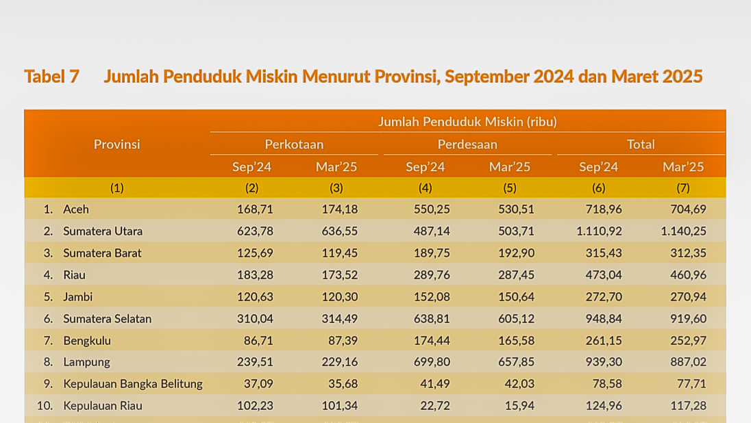 Sebagai informasi, data BPS RI ini diolah dari data Survei Sosial Ekonomi Nasional (Susenas) Maret 2024, September 2024, dan Maret 2025.