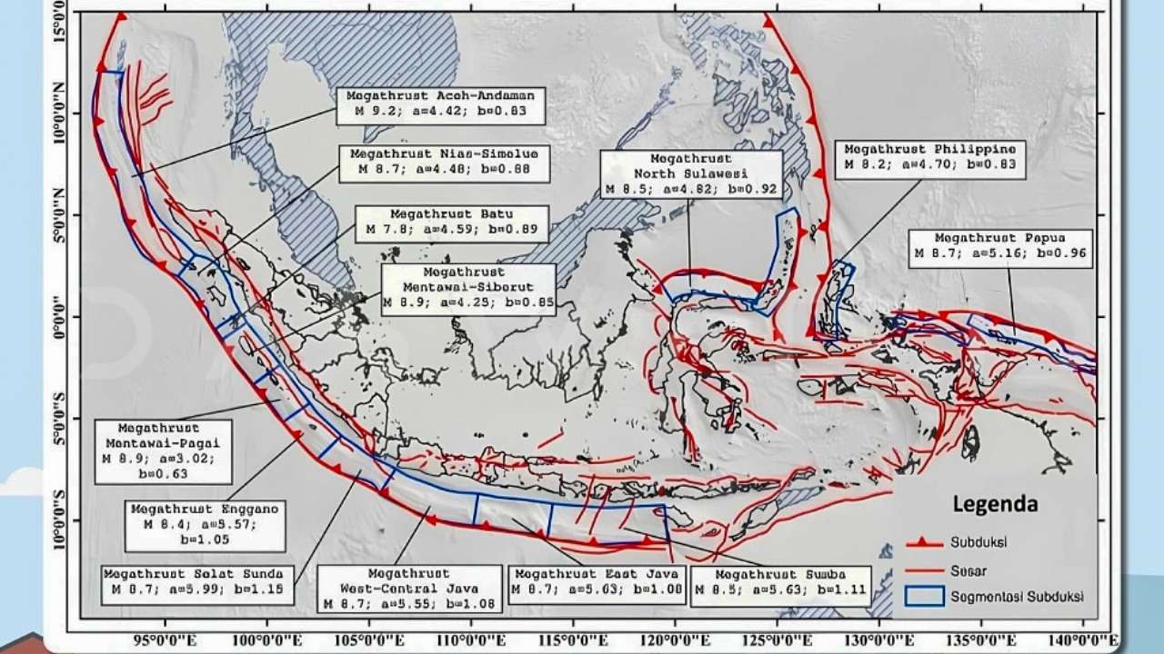 BMKG telah memetakan 13 segmen megathrust di Indonesia, dengan Segmen Selat Sunda berpotensi magnitudo maksimum 8,7.